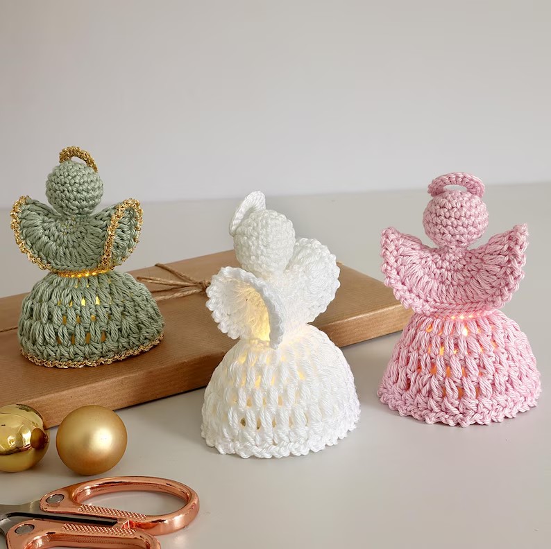 After the holiday season, store your crochet angels carefully. Wrap each one in tissue paper or bubble wrap and place them in a box to avoid damage. Keep them in a cool, dry place to prevent yellowing or moisture buildup.