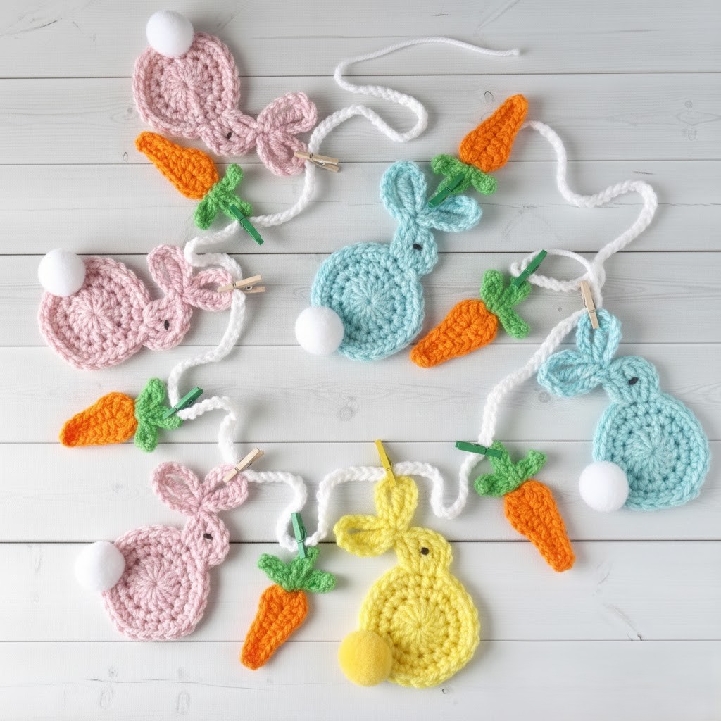 A successful Crochet Easter garland Tutorial begins with understanding the core concept of a garland. A garland is a decorative strand composed of multiple crochet motifs attached to a single chain or cord. These motifs can include Easter eggs, small bunny silhouettes, mini flowers, or carrots. The key to a cohesive look is maintaining consistent sizing and spacing between each element. Planning your design before starting helps ensure a balanced and visually appealing result.