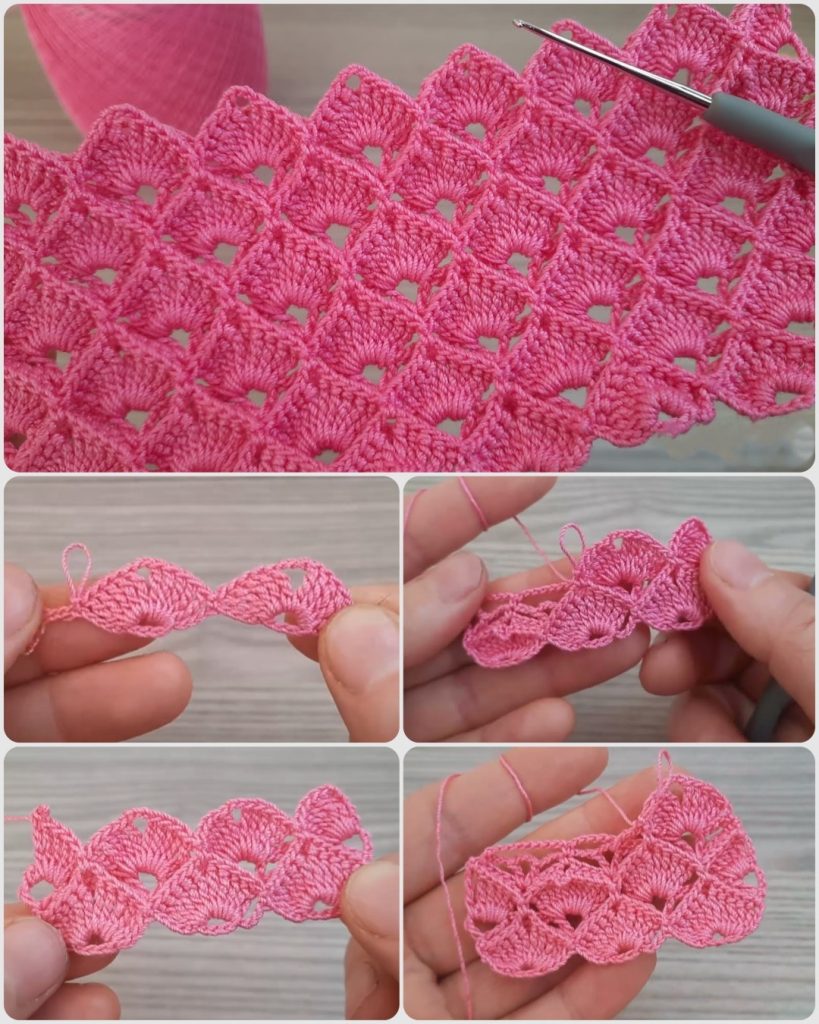 Known for its layered, shell-like appearance, this stitch pattern mimics the look of delicate scales or fans, making it a favorite among crocheters who want to create visually striking pieces.