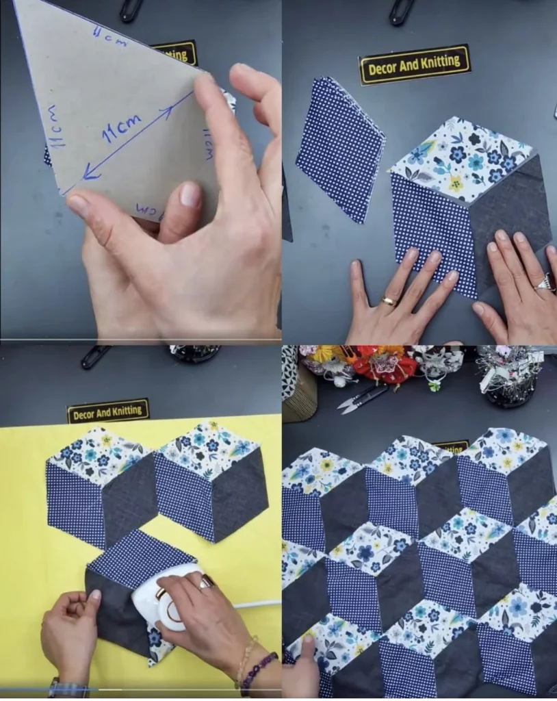 Now that all fabric pieces are ready, it’s time to start sewing the Diamond and Trapezoid Cloth Block 3D quilt blocks. Following the correct order ensures a smooth construction process.