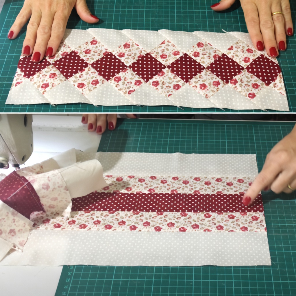 After assembling the units, join them into long strips that will form the border. Make sure to check the length frequently to ensure it matches the dimensions of your quilt.